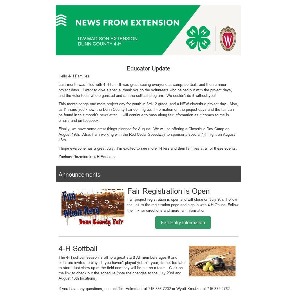 I hope everyone has a great July. I'm excited to see more 4-H'ers and their families at all of these events.