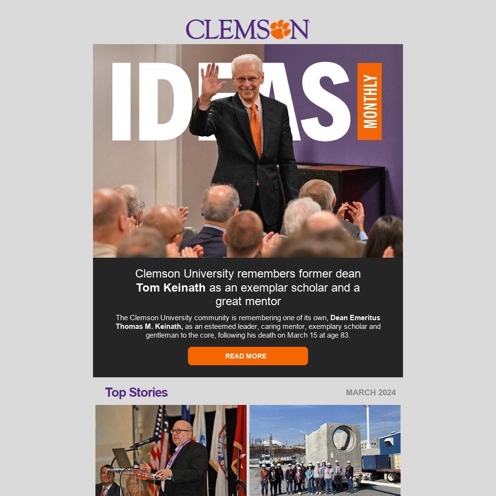 IDEAS Monthly is published by the PROMO Office in Clemson University’s College of Engineering, Computing and Applied Sciences. Contact the team with feedback or story suggestions.