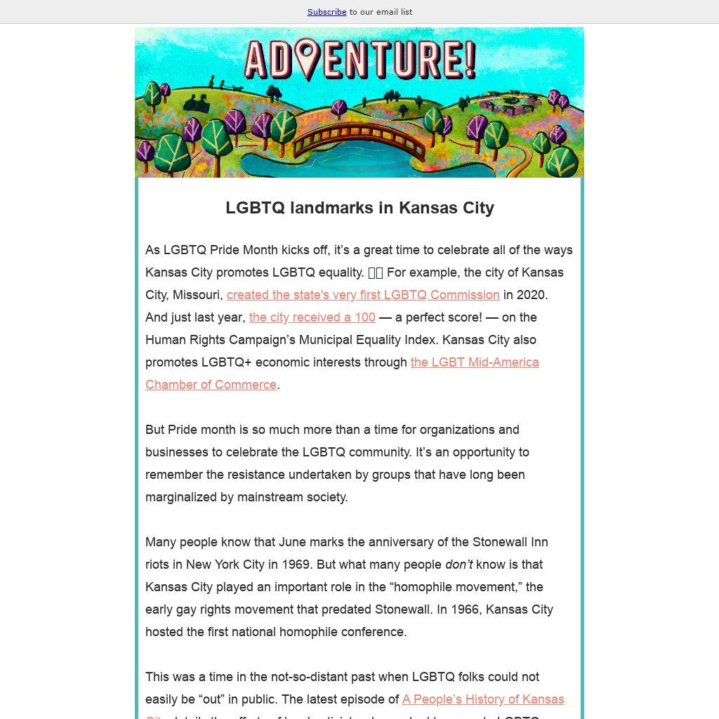 As LGBTQ Pride Month kicks off, it’s a great time to celebrate all of the ways Kansas City promotes LGBTQ equality. 🏳️🌈 For example, the city of Kansas City, Missouri, created the state's very first LGBTQ Commission in 2020. And just last year, the city received a 100 — a perfect score! — on the Human Rights Campaign’s Municipal Equality Index. Kansas City also promotes LGBTQ+ economic interests through the LGBT Mid-America Chamber of Commerce.