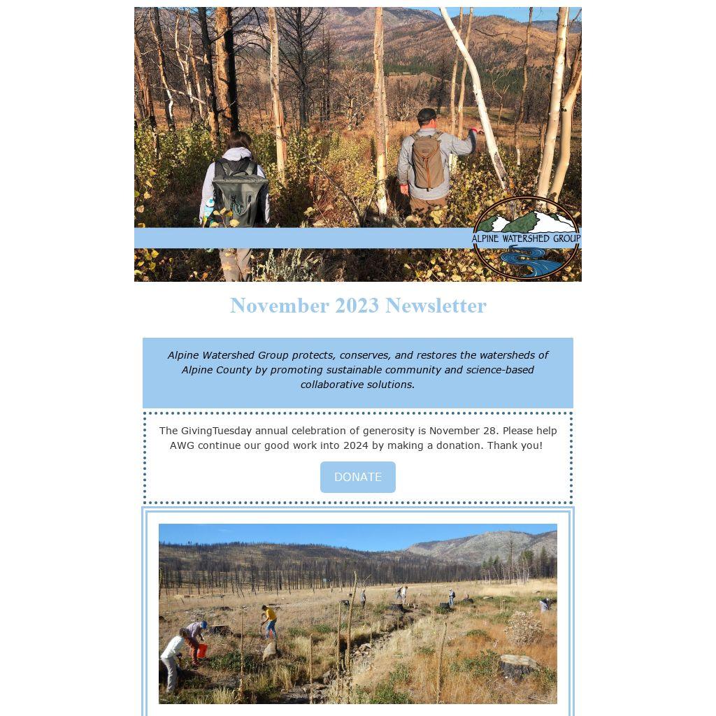 Ways to Connect or HelpWe always love to hear from our watershed community! Below are email links to reach AWG's staff, or reach us at AWG's office at (530) 694-2327. Please follow us on Facebook and Instagram, and subscribe to our YouTube channel.