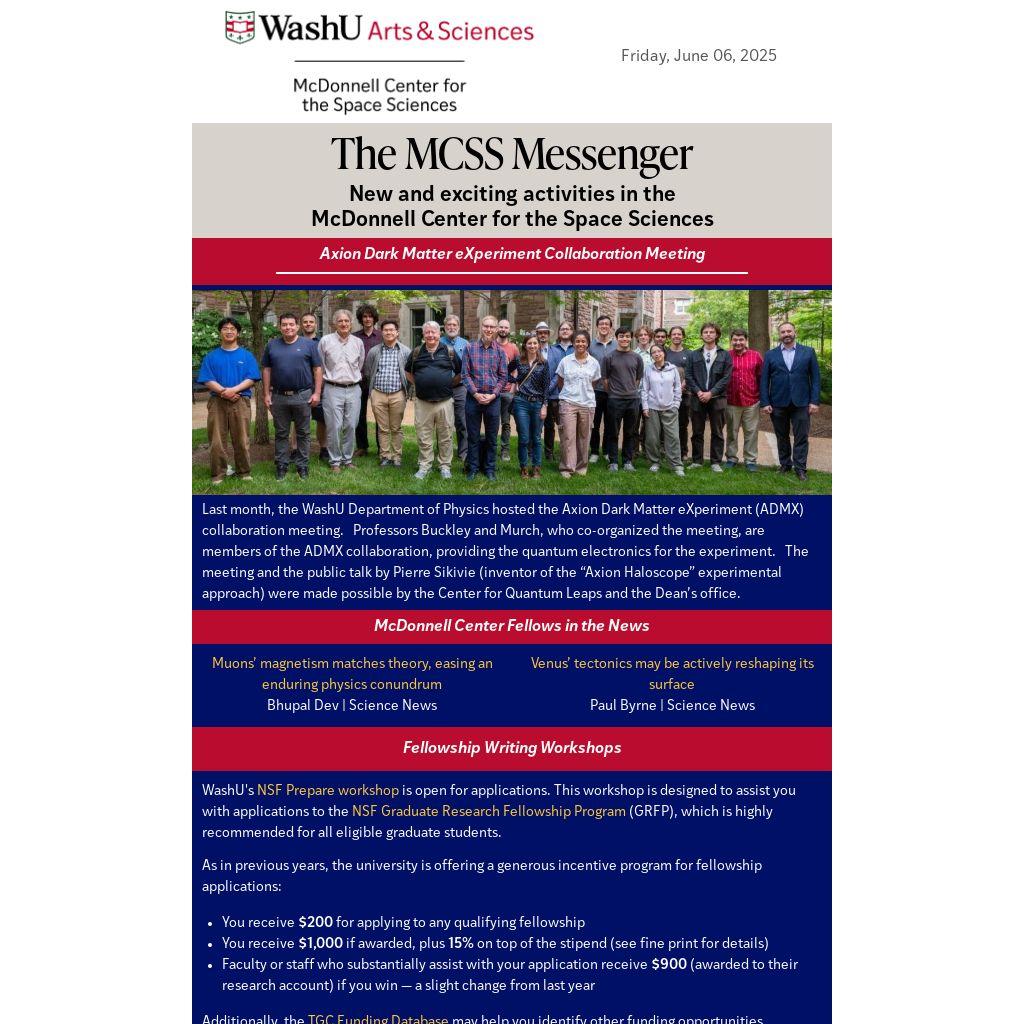 WashU's NSF Prepare workshop is open for applications. This workshop is designed to assist you with applications to the NSF Graduate Research Fellowship Program (GRFP), which is highly recommended for all eligible graduate students.