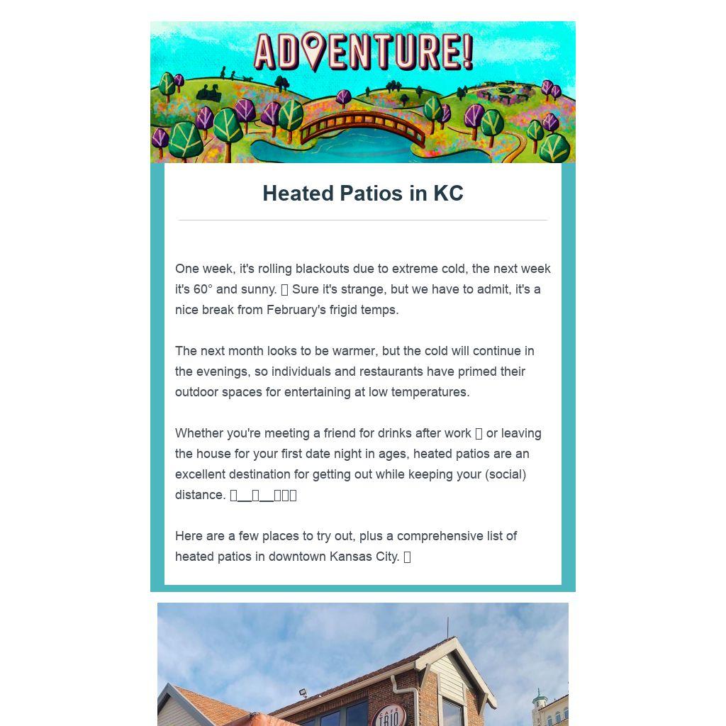 Here are a few places to try out, plus a comprehensive list of heated patios in downtown Kansas City.Β π
