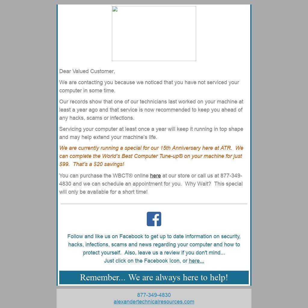We are contacting you because we noticed that you have not serviced your computer in some time.
