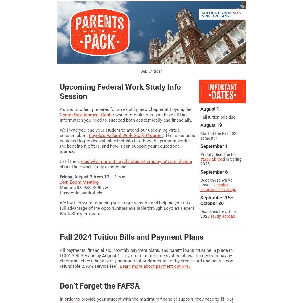 We invite you and your student to attend our upcoming virtual session about Loyola’s Federal Work-Study Program. This session is designed to provide valuable insights into how the program works, the benefits it offers, and how it can support your educational journey.