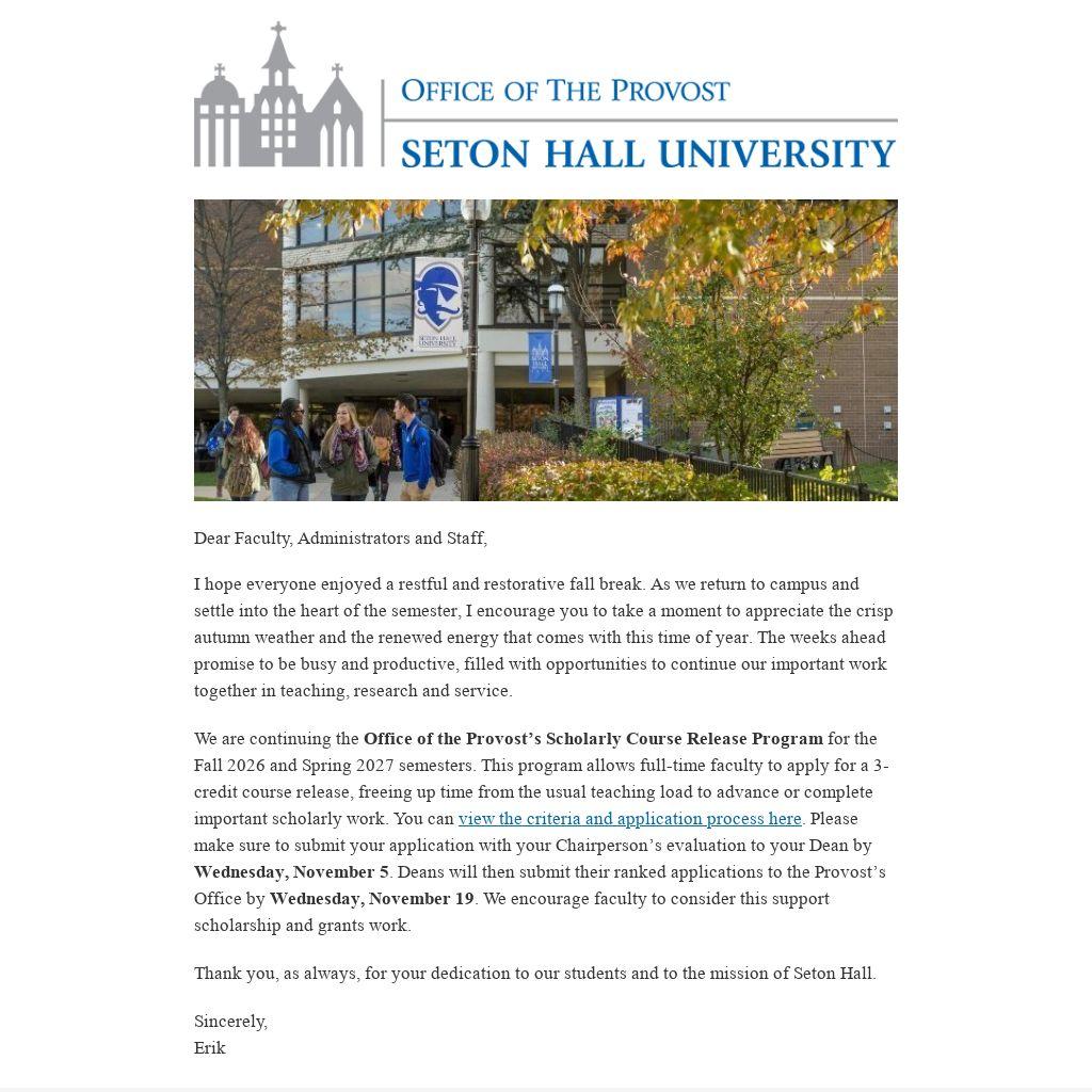 Thank you, as always, for your dedication to our students and to the mission of Seton Hall.