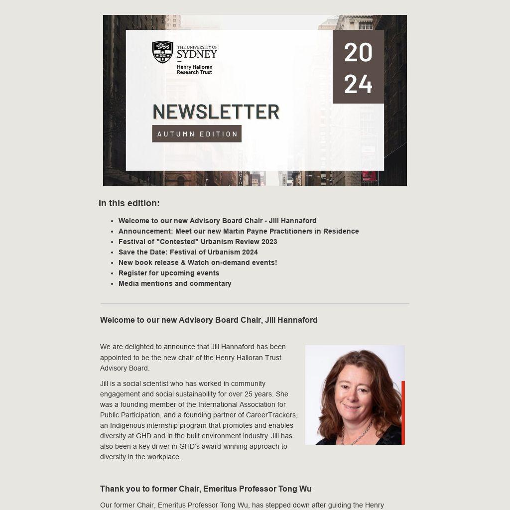 In 2023, the PIR Program was renamed to honour and recognise the contributions of Martin Payne, who was instrumental in supporting the establishment of the Henry Halloran Research Trust and its mission to foster connections between the University and wider policy and practice communities.