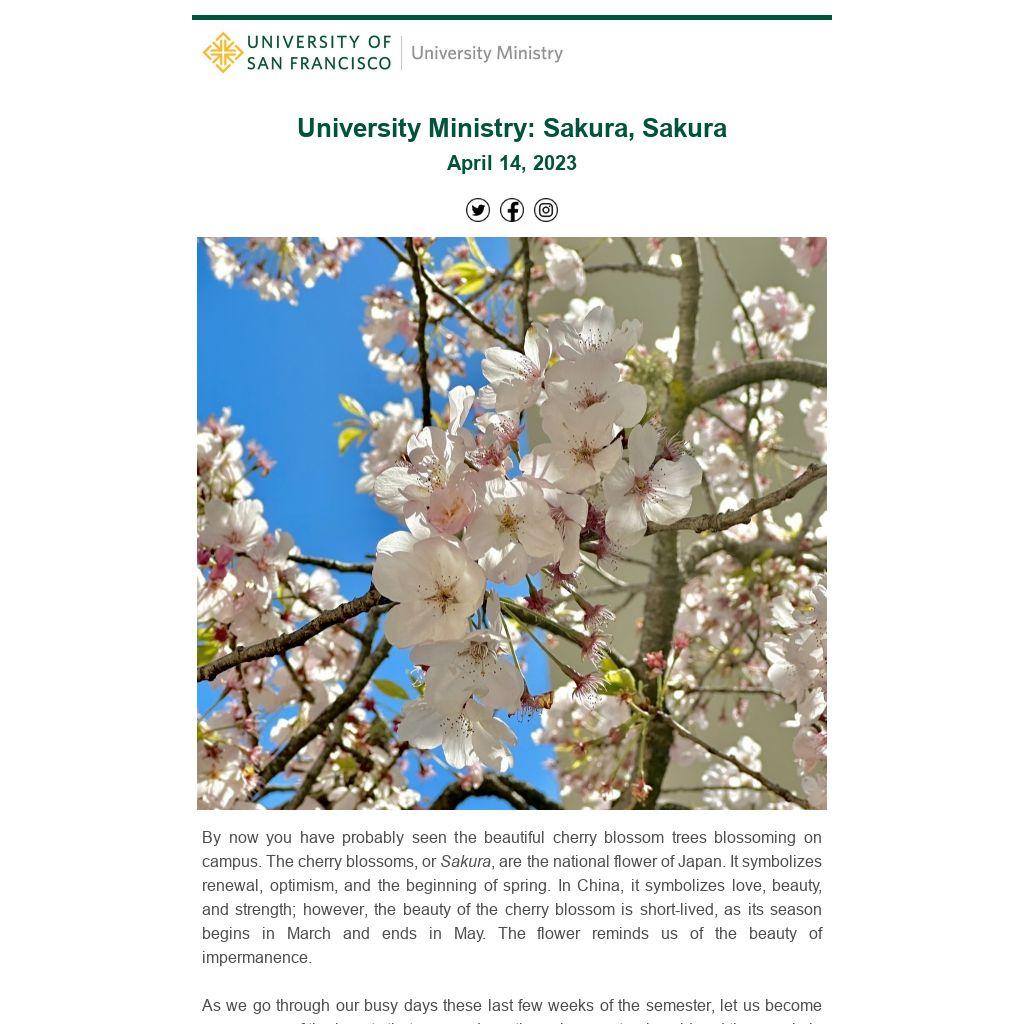 By now you have probably seen the beautiful cherry blossom trees blossoming on campus. The cherry blossoms, or Sakura, are the national flower of Japan. It symbolizes renewal, optimism, and the beginning of spring. In China, it symbolizes love, beauty, and strength; however, the beauty of the cherry blossom is short-lived, as its season begins in March and ends in May. The flower reminds us of the beauty of impermanence.
