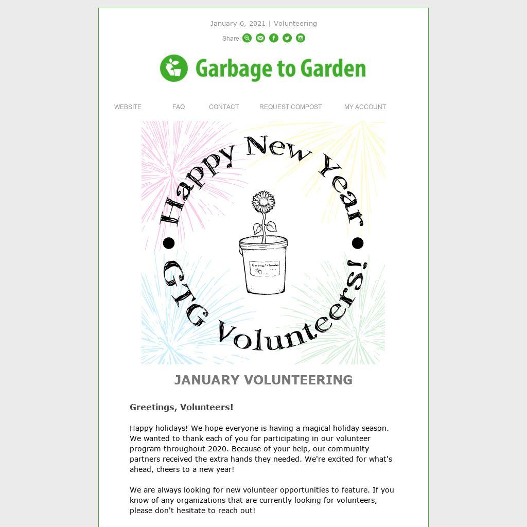 As always, to sign up for an event this month and receive a month of free Garbage to Garden service, RSVP by email, and we will help answer any questions you may have. Remember, events are first-come, first-serve.