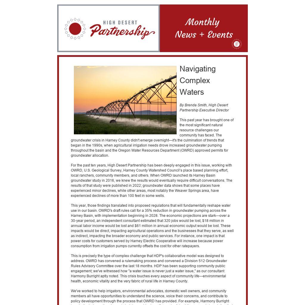 This is precisely the type of complex challenge that HDP's collaborative model was designed to address. OWRD has convened a rulemaking process and convened a Division 512 Groundwater Rules Advisory Committee over the last 18 months. HDP has been supporting community public engagement; we've witnessed how "a water issue is never just a water issue," as our consultant Harmony Burright aptly noted. This crisis touches every aspect of community life—environmental health, economic vitality and the very fabric of rural life in Harney County.