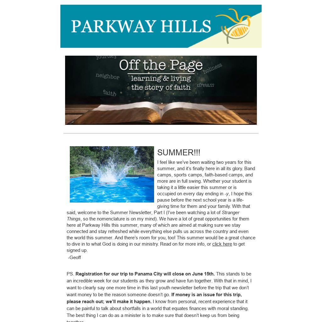 June 19: Sunday Kickback will look a little different this time because of VBS. Ice & Vice at 4pm, followed by serving at church at 5:30. Some will be assigned to assist in VBS, others will help with some needs around campus. Let Geoff know you're coming so we can get a count for dinner; bring money for fro-yo but dinner is covered.