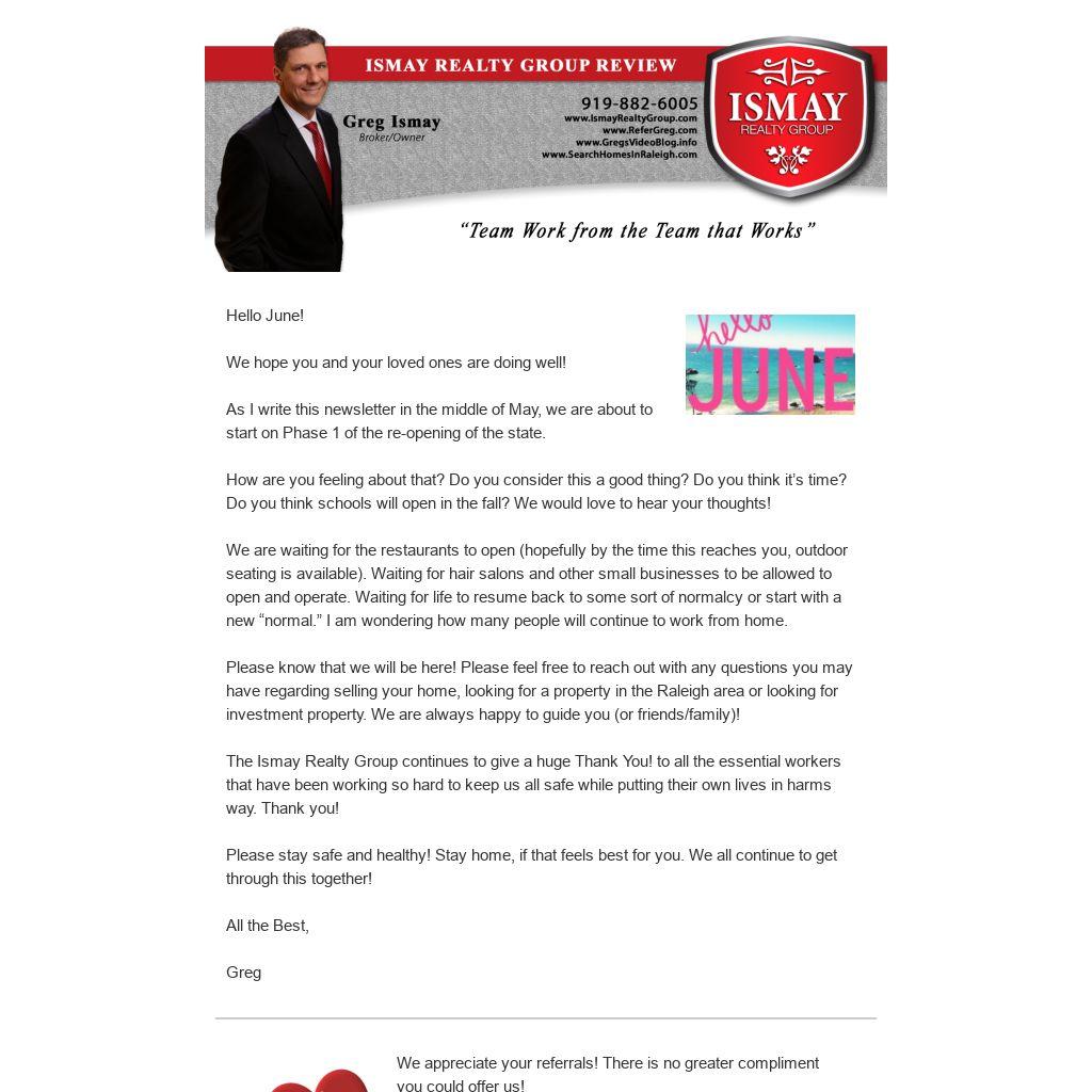 Disclaimer: The information contained in this letter is intended for informational purposes. It should not substitute as legal, accounting, investment, medical or other professional services advice. Always seek a competent professional for answers to your specific questions. This letter is not intended to solicit real estate properties currently for sale.