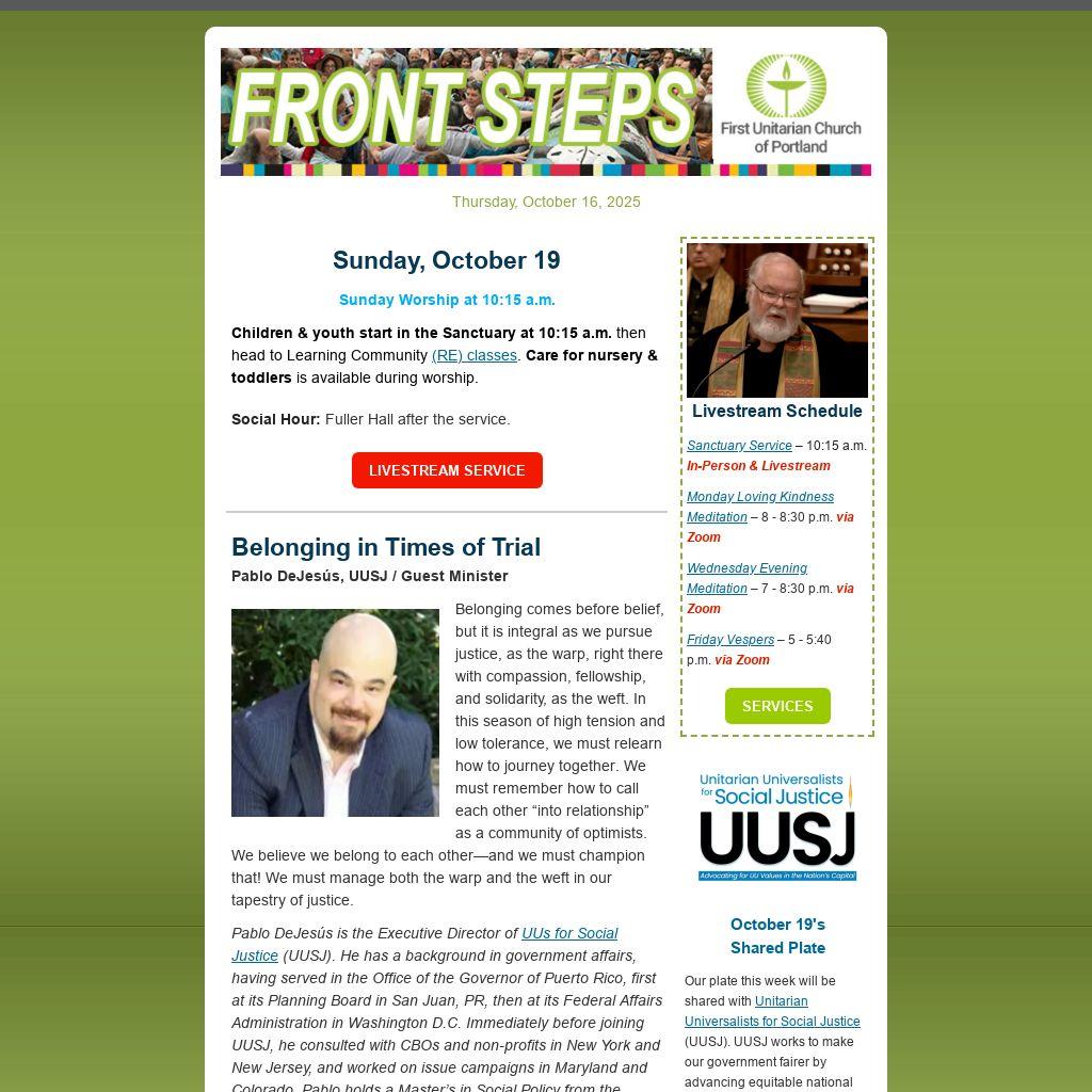 Pablo DeJesĂşs, UUSJ / Guest Minister