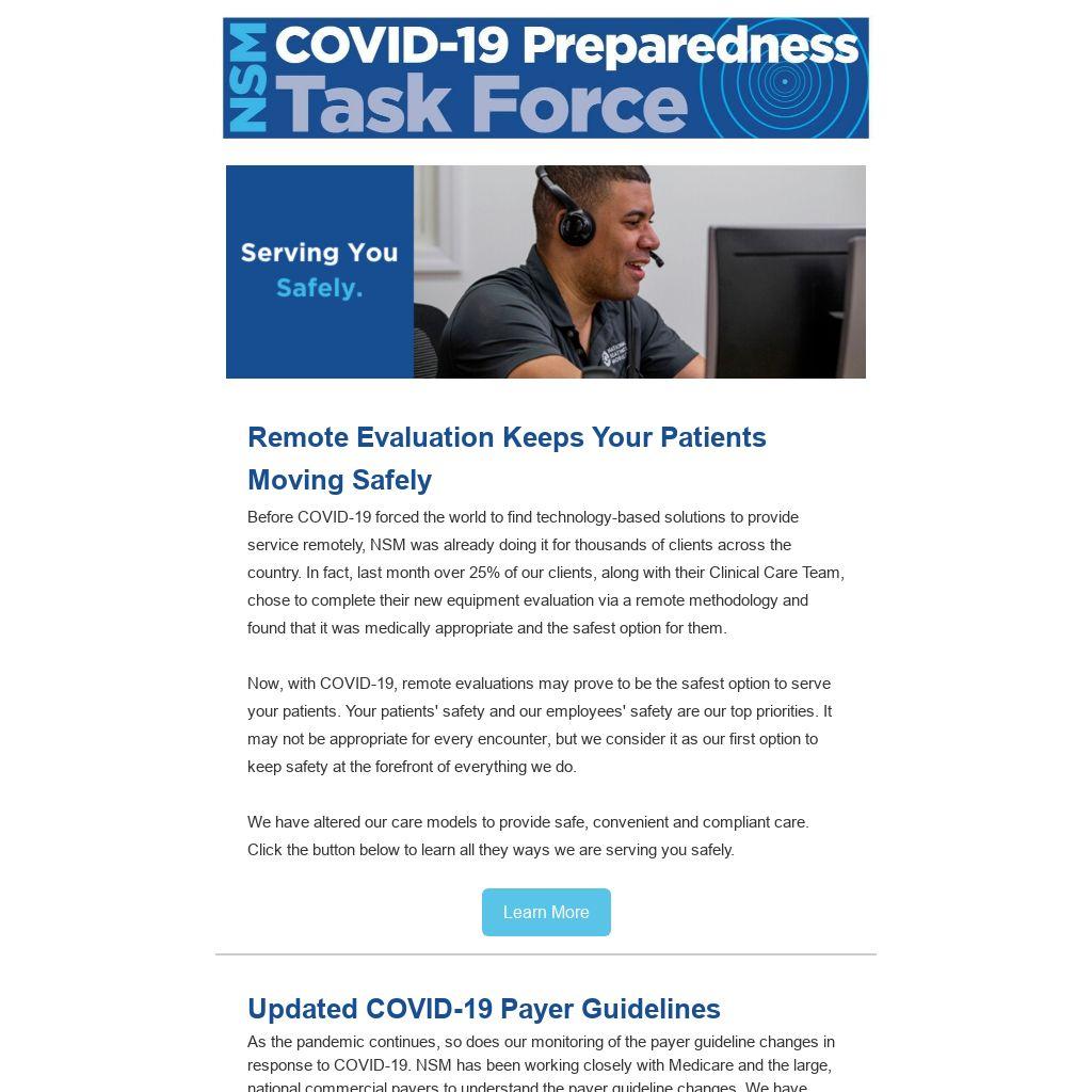 As states begin to lift their "stay-at-home" and "shelter-in-place" orders we know we will experience a new normal, including continuation of no contact and limited contact evaluation and deliveries. We are committed to serving you, your patients and our employees in a safe manner, which is why we want to hear from you.