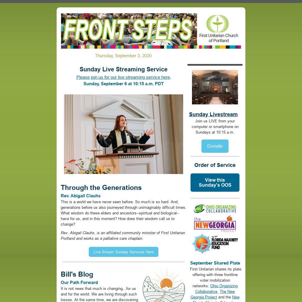 Have a Submission for E-News?If you have a submission you would like published in our weekly Front Steps (E-News), please submit it here with subject line “For E-News.”