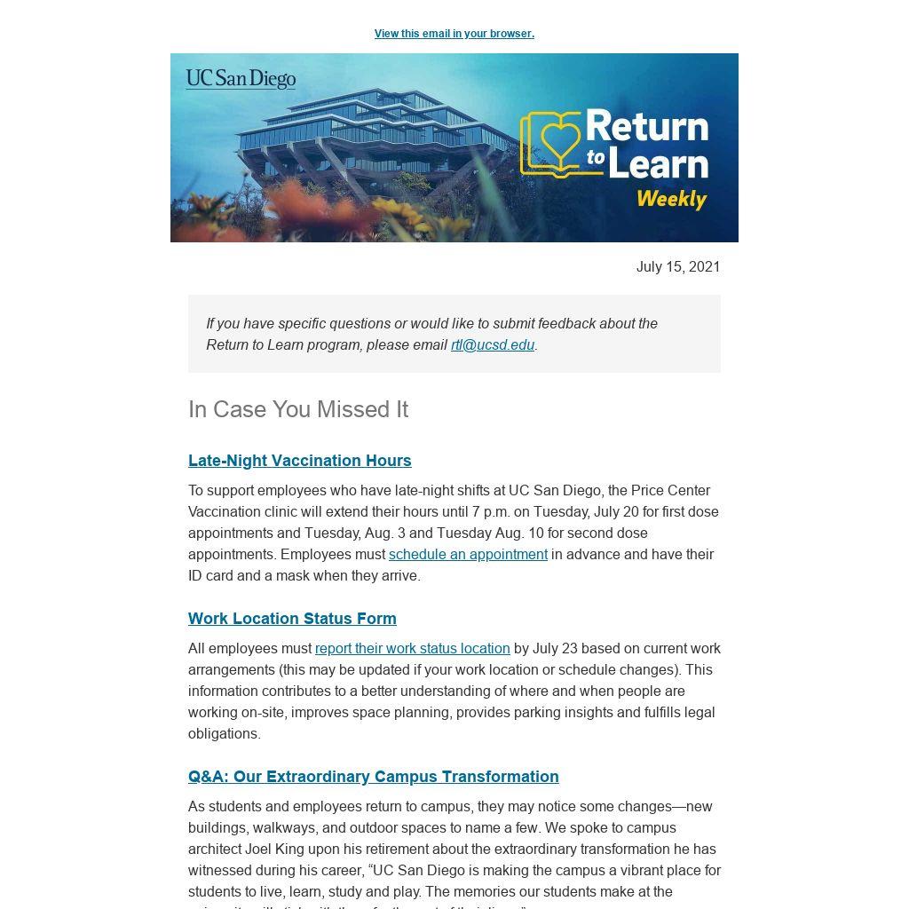 Answer: Yes, UC San Diego students will have access to free vaccination in the fall term. We will provide vaccinations to students who arrive who are not yet vaccinated.