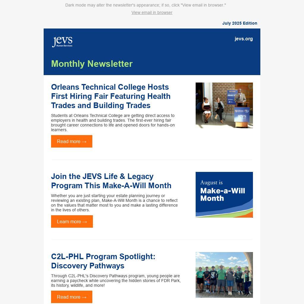 Dark mode may alter the newsletter's appearance; if so, click "View email in browser."