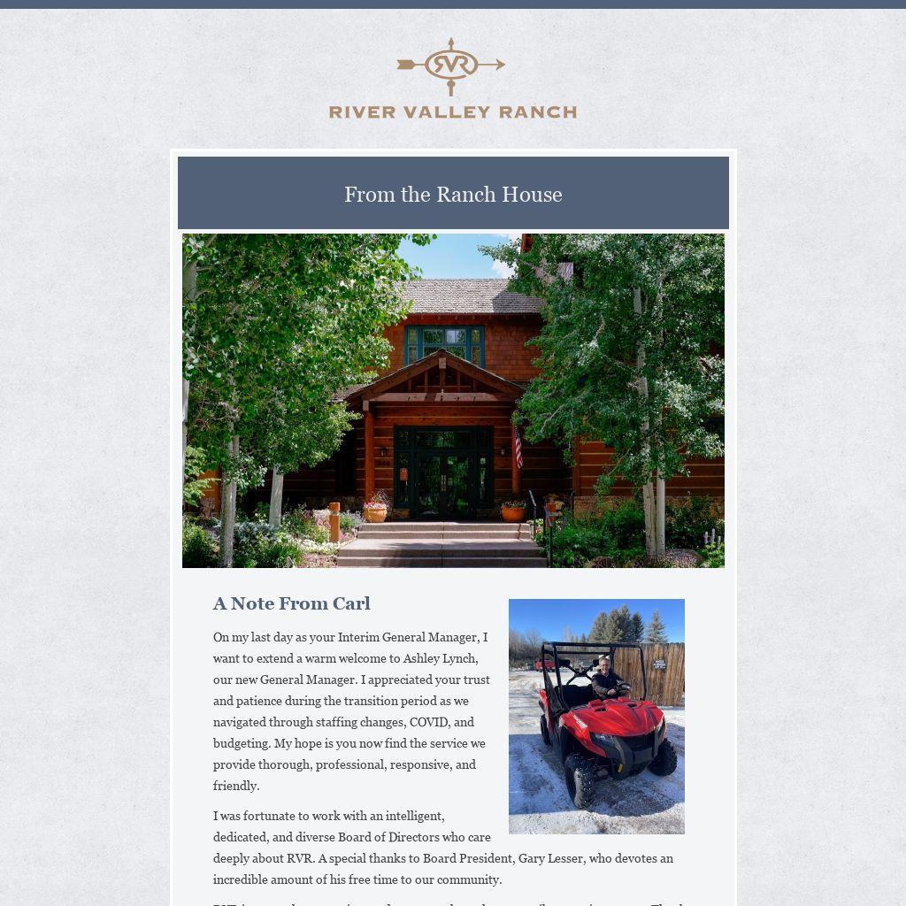 Mark your calendars for a happy hour event at the Ranch House on Friday, Feb. 4 at 5 p.m. as we gather to say goodbye to Carl Hostetter, RVR's Interim General Manager, and welcome, Ashley Lynch, our new General Manager.