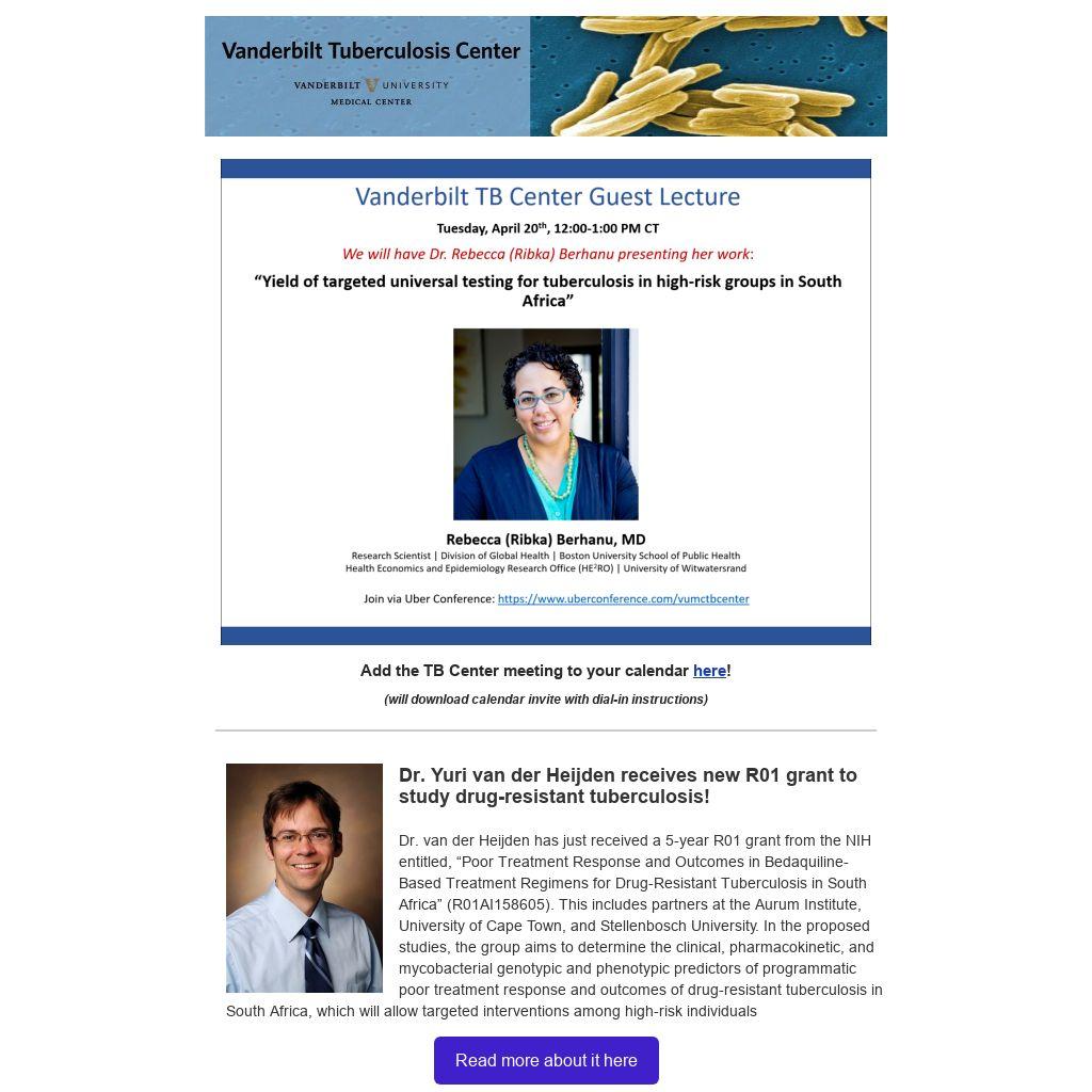 Dr. Yuri van der Heijden receives new R01 grant to study drug-resistant tuberculosis!