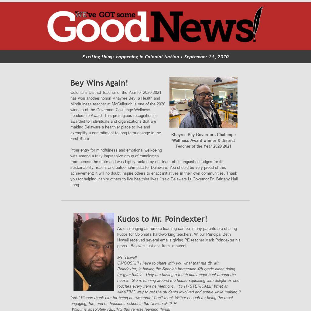 As challenging as remote learning can be, many parents are sharing kudos for Colonial’s hard-working teachers. Wilbur Principal Beth Howell received several emails giving PE teacher Mark Poindexter his props. Below is just one from a parent: