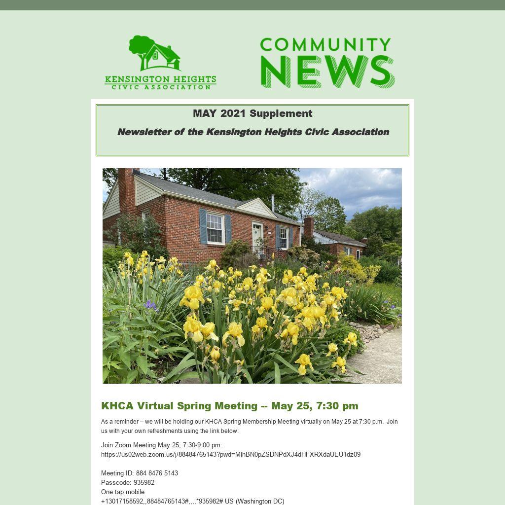 As a reminder – we will be holding our KHCA Spring Membership Meeting virtually on May 25 at 7:30 p.m. Join us with your own refreshments using the link below: