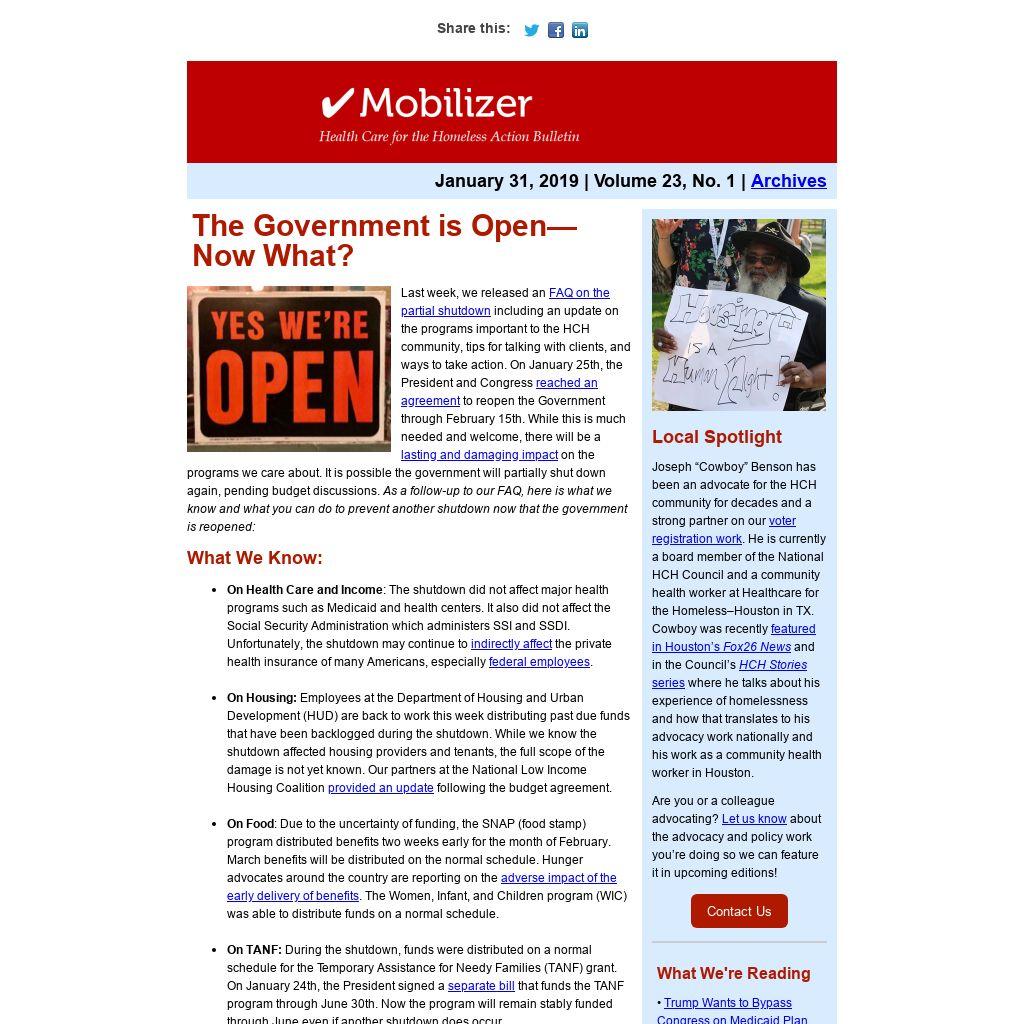 Our work balances the need to ensure the current system can respond to immediate needs, while also working to achieve the larger, structural changes needed to ensure full access to health care and housing for all. The Council will continue to support the Health Care for the Homeless community in their local and state advocacy activities, and unify our community’s voice in public policy.