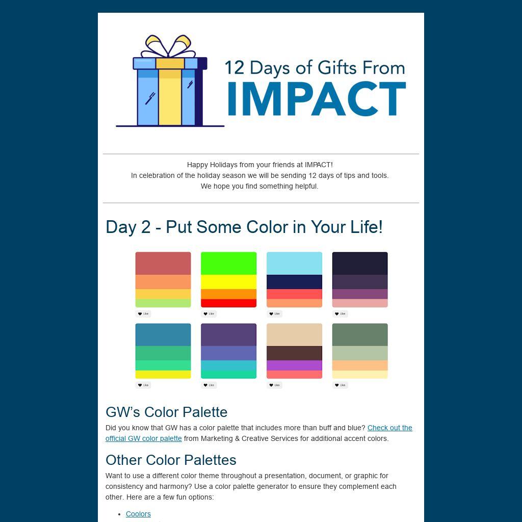 Want to use a different color theme throughout a presentation, document, or graphic for consistency and harmony? Use a color palette generator to ensure they complement each other. Here are a few fun options: