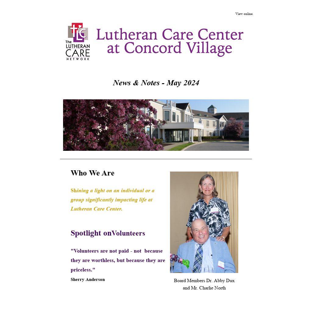 Please consider a gift today. Click here to donate online (you may designate your gift in honor or memory of someone) or mail it to: Patricia Ludington, Administrator, Lutheran Care Center, 965 Dutchess Turnpike, Poughkeepsie, NY 12603.