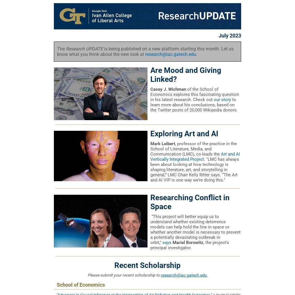 The Research UPDATE is being published on a new platform starting this month. Let us know what you think about the new look at research@iac.gatech.edu.