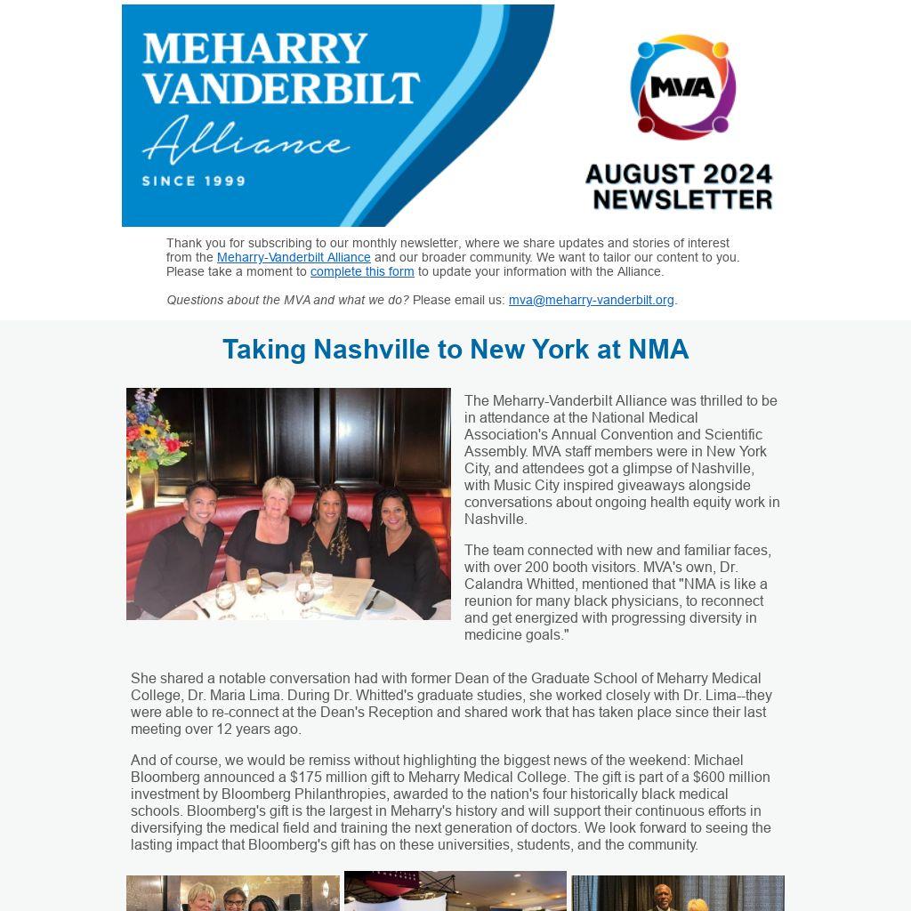 The Meharry-Vanderbilt Alliance was thrilled to be in attendance at the National Medical Association's Annual Convention and Scientific Assembly. MVA staff members were in New York City, and attendees got a glimpse of Nashville, with Music City inspired giveaways alongside conversations about ongoing health equity work in Nashville.