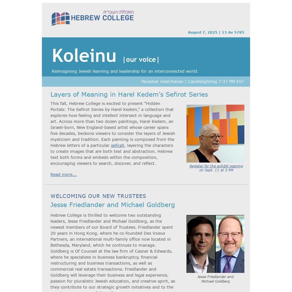 Monday, August 25 | 11 AM-5:30 PM | Hebrew College