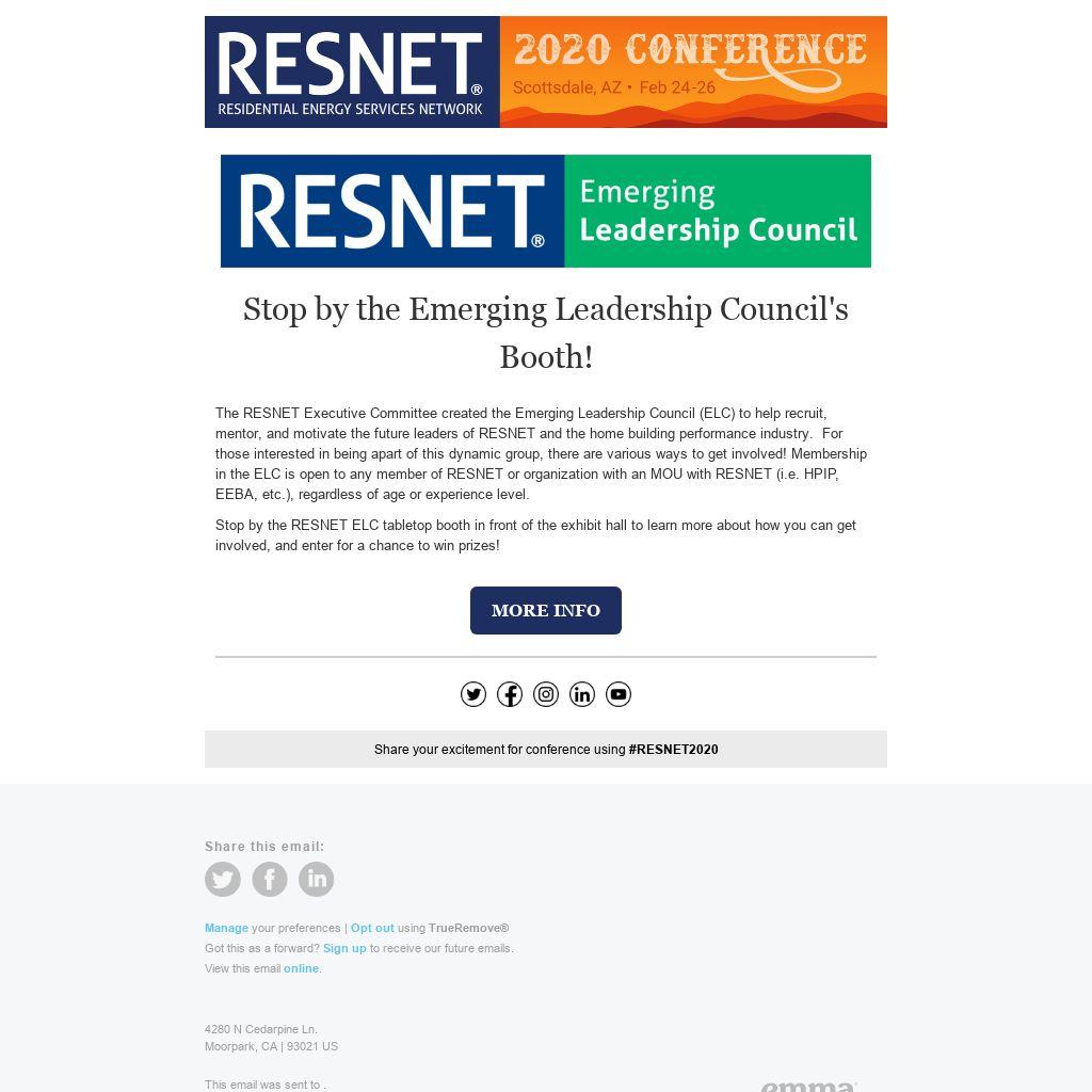 The RESNET Executive Committee created the Emerging Leadership Council (ELC) to help recruit, mentor, and motivate the future leaders of RESNET and the home building performance industry. For those interested in being apart of this dynamic group, there are various ways to get involved! Membership in the ELC is open to any member of RESNET or organization with an MOU with RESNET (i.e. HPIP, EEBA, etc.), regardless of age or experience level.