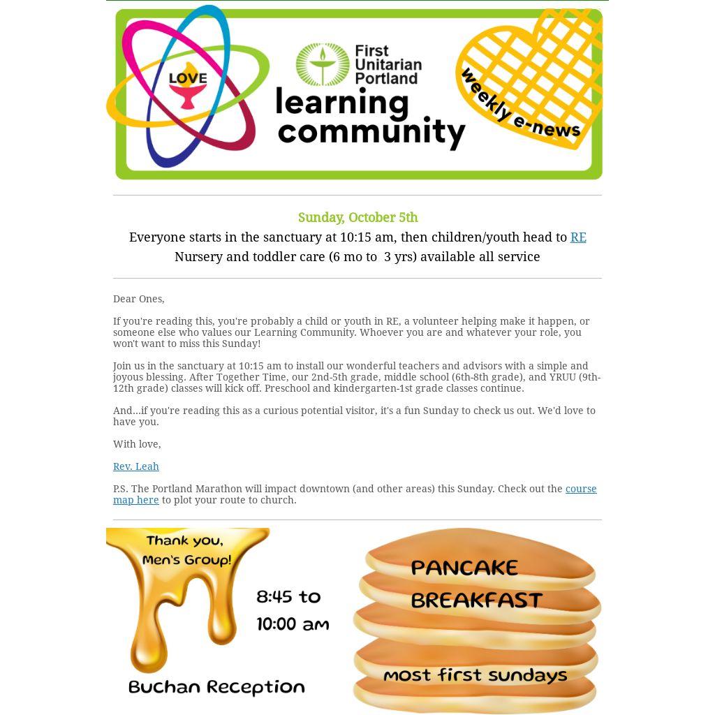 If you're reading this, you're probably a child or youth in RE, a volunteer helping make it happen, or someone else who values our Learning Community. Whoever you are and whatever your role, you won't want to miss this Sunday!
