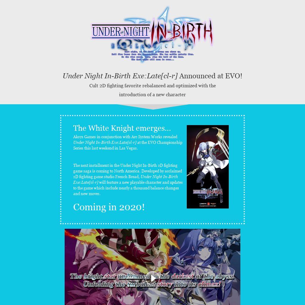 Aksys Games in conjunction with Arc System Works revealed Under Night In-Birth Exe:Late[cl-r] at the EVO Championship Series this last weekend in Las Vegas.