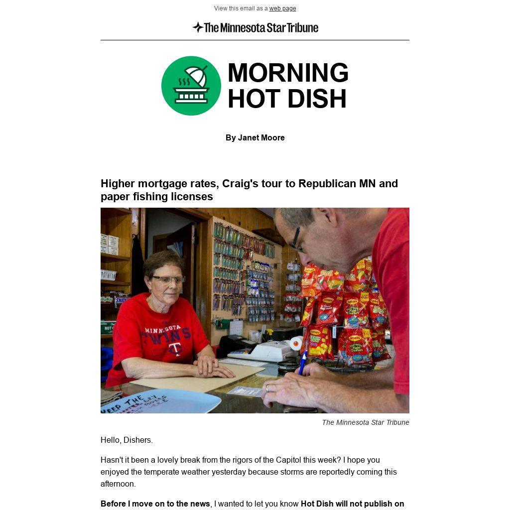 Before I move on to the news, I wanted to let you know Hot Dish will not publish on Friday, but rest assured, we'll be back on Monday as things ramp back up at the Capitol.