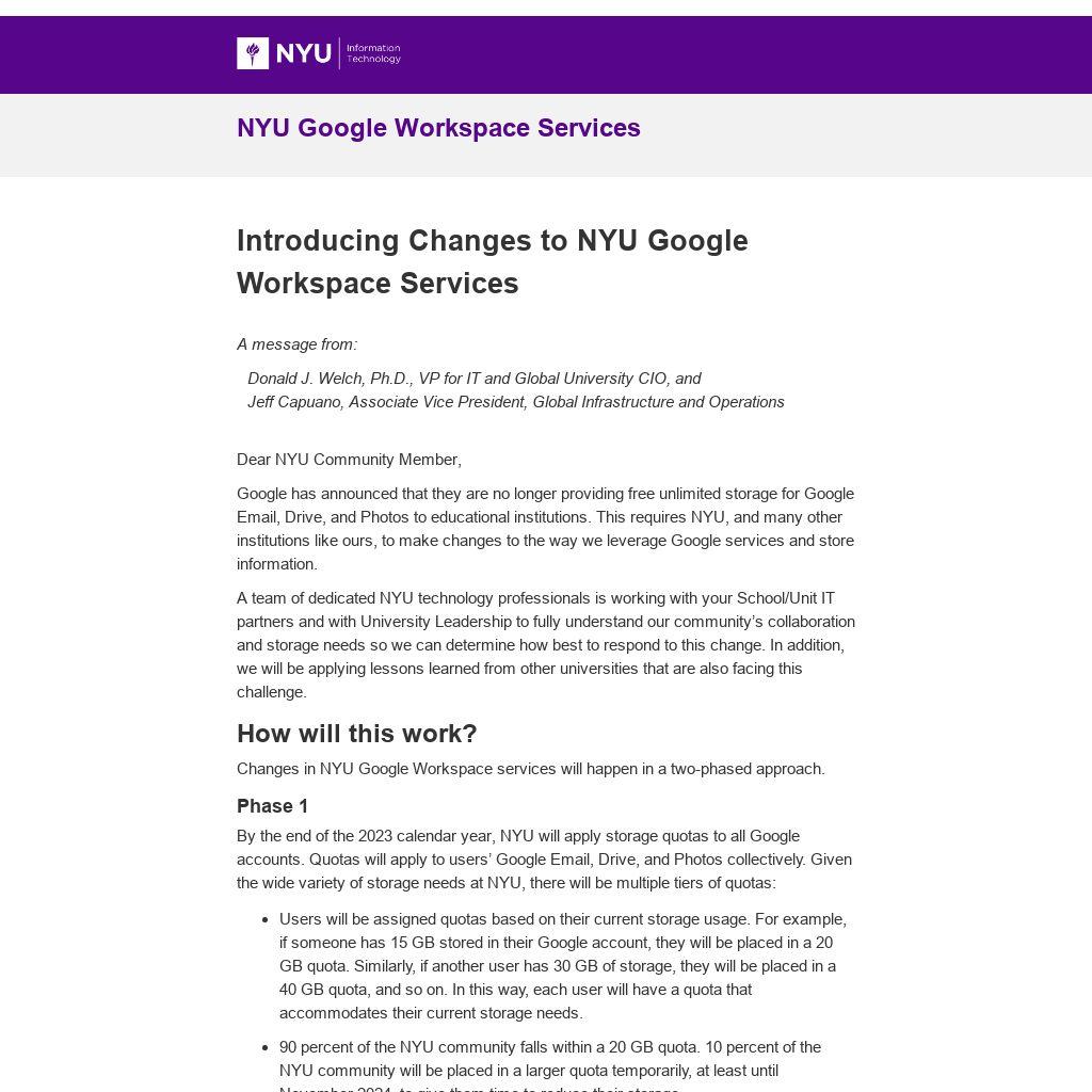 Changes in NYU Google Workspace services will happen in a two-phased approach.