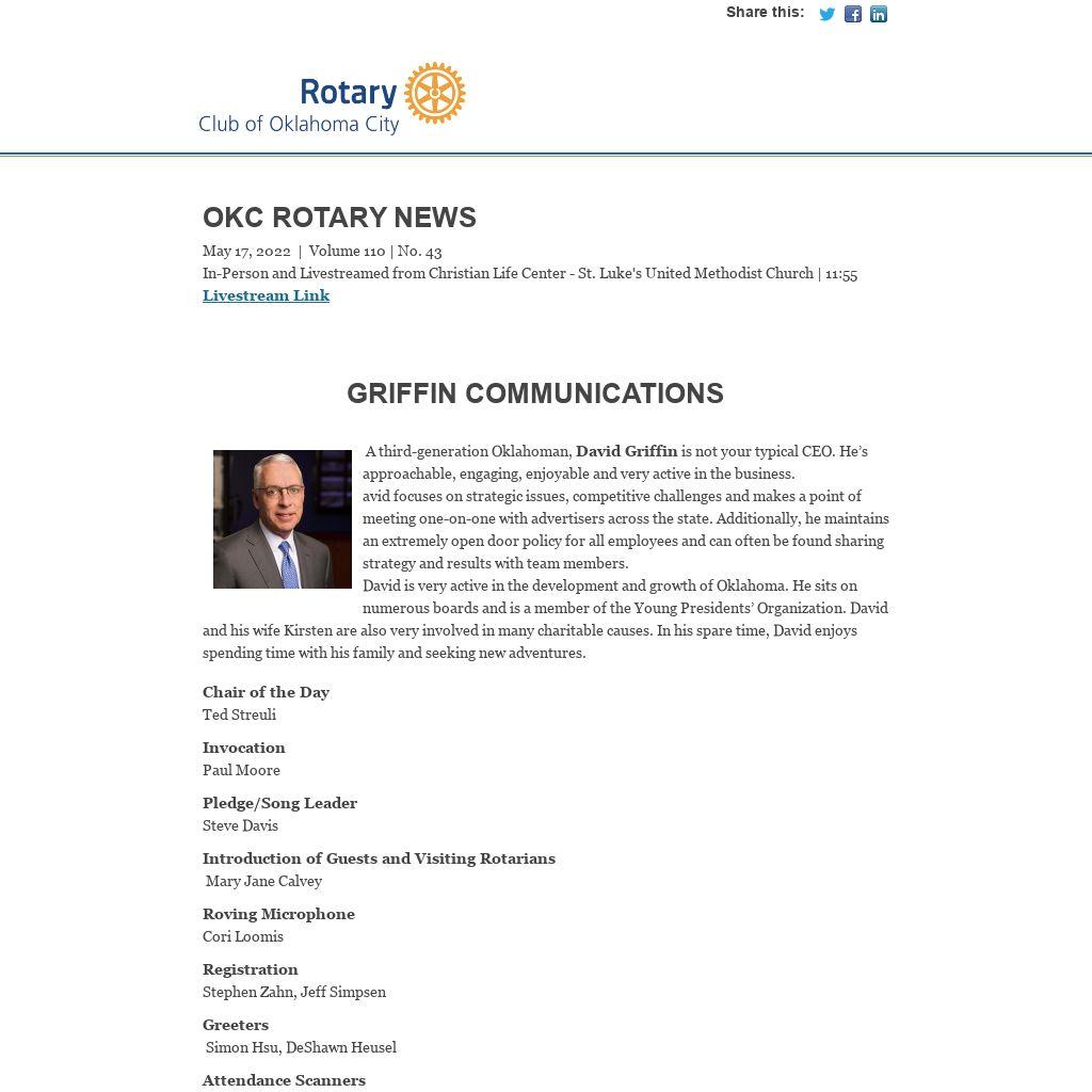 OKC Rotary NewsMay 17, 2022 | Volume 110 | No. 43