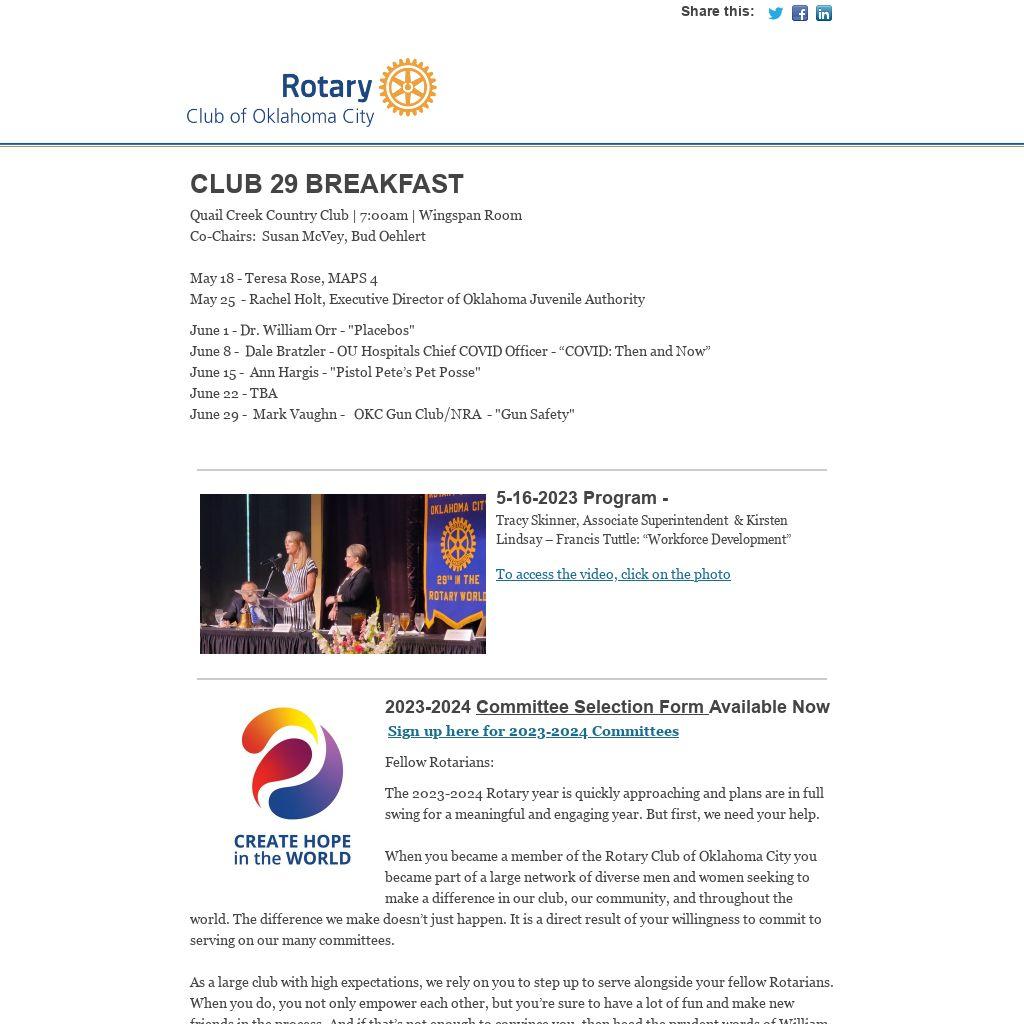 June 13, 2023 - Rotary Meeting location changed to National Cowboy & Western Heritage Museum