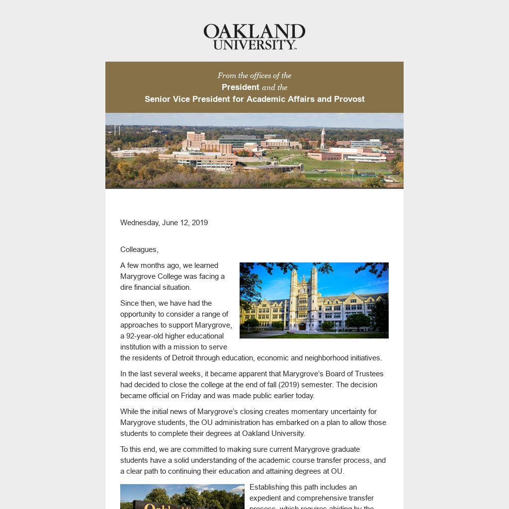 In the months ahead, please warmly welcome Marygrove students into our programs, classes and the OU community.