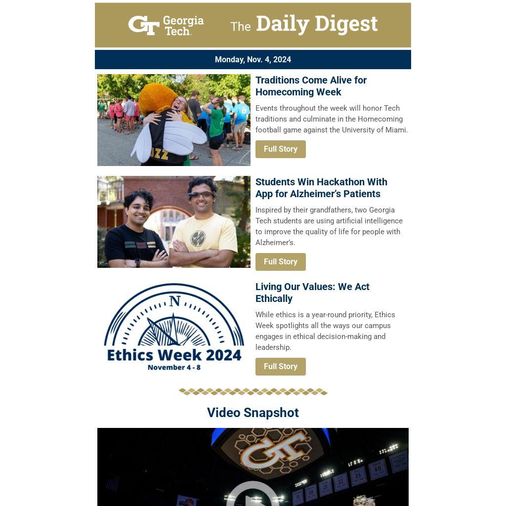 | Events throughout the week will honor Tech traditions and culminate in the Homecoming football game against the University of Miami.