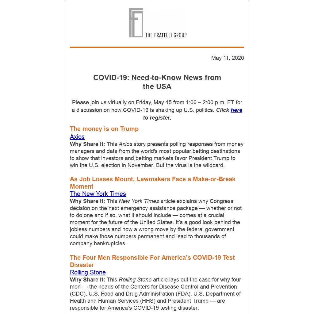 Why Share It: This Axios story presents polling responses from money managers and data from the world's most popular betting destinations to show that investors and betting markets favor President Trump to win the U.S. election in November. But the virus is the wildcard.