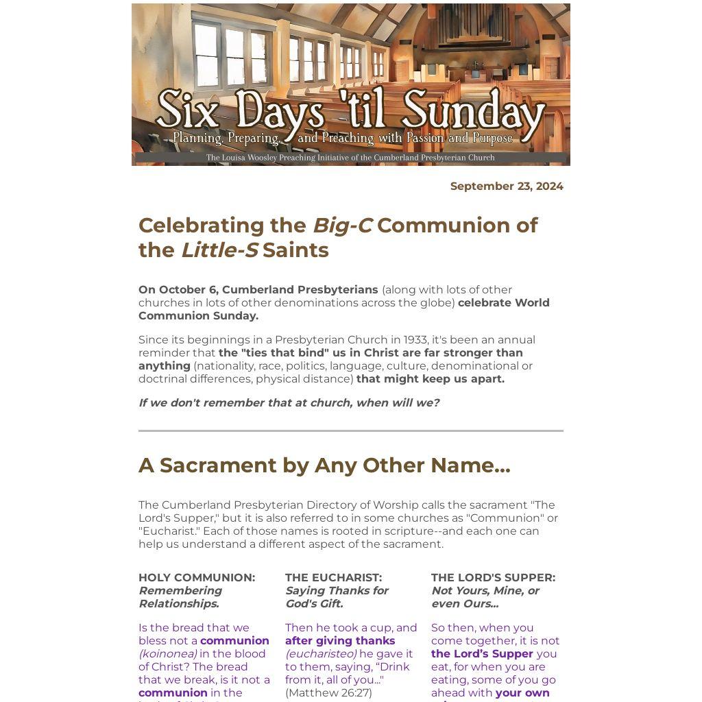 On October 6, Cumberland Presbyterians (along with lots of other churches in lots of other denominations across the globe) celebrate World Communion Sunday.