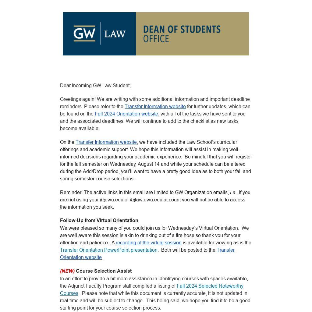 Reminder! The active links in this email are limited to GW Organization emails, i.e., if you are not using your @gwu.edu or @law.gwu.edu account you will not be able to access the information you seek.