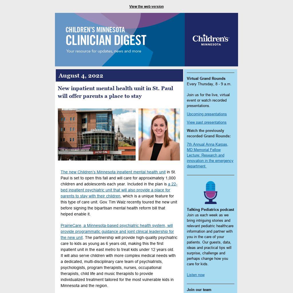 Share the knowledge If you find this newsletter valuable, we invite you to send this email to your colleagues so that they can learn about what's happening at Children's Minnesota.