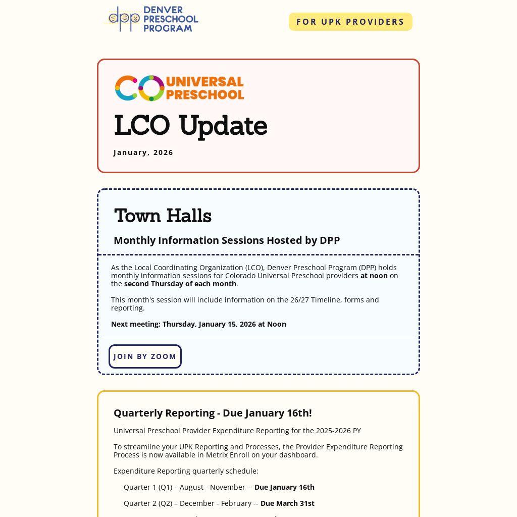 Quarterly reporting, Survey deadline, Provider Setup Forms