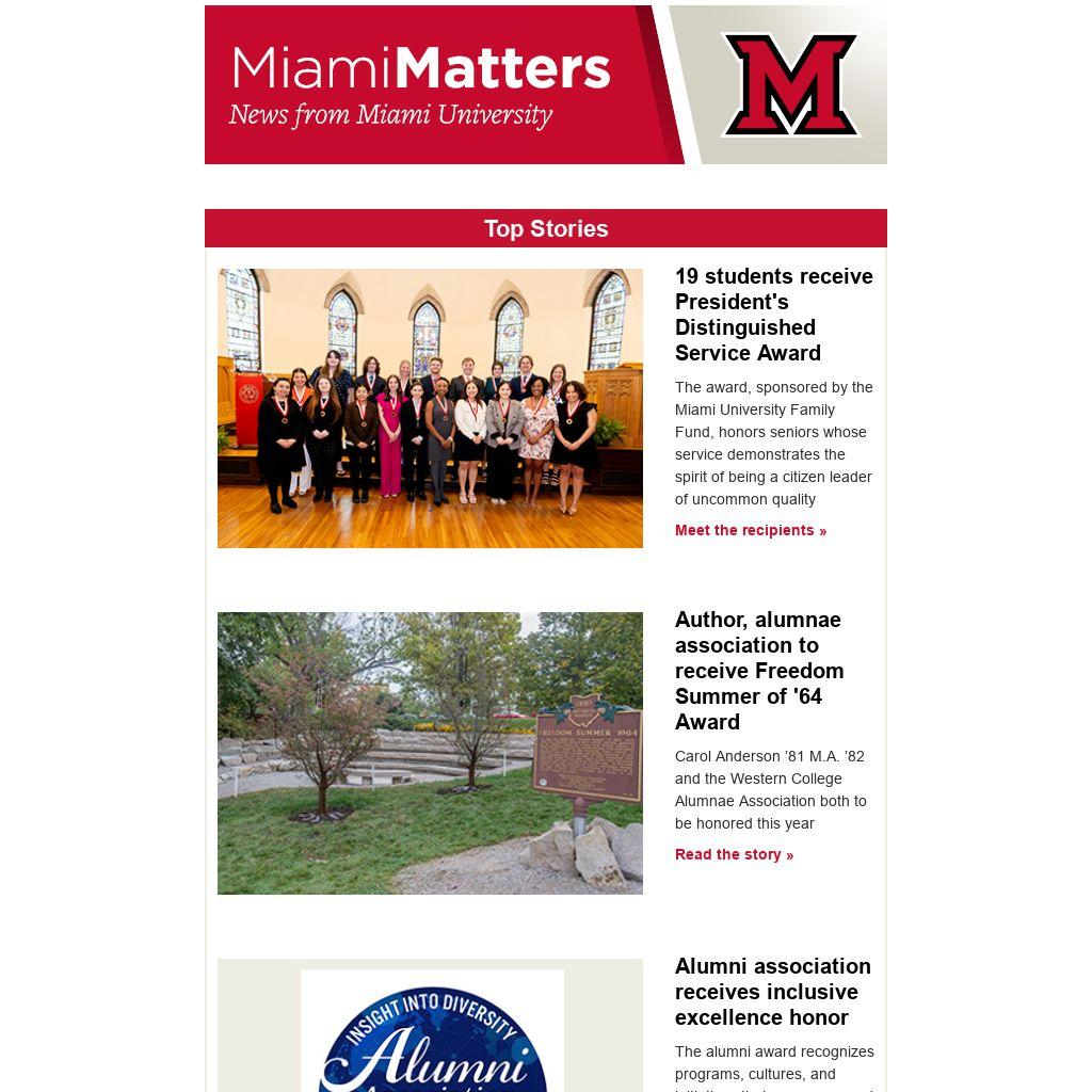 Students will publicly present research and findings from in-depth projects, reflecting Miami's support of undergraduate research. See the forum schedule