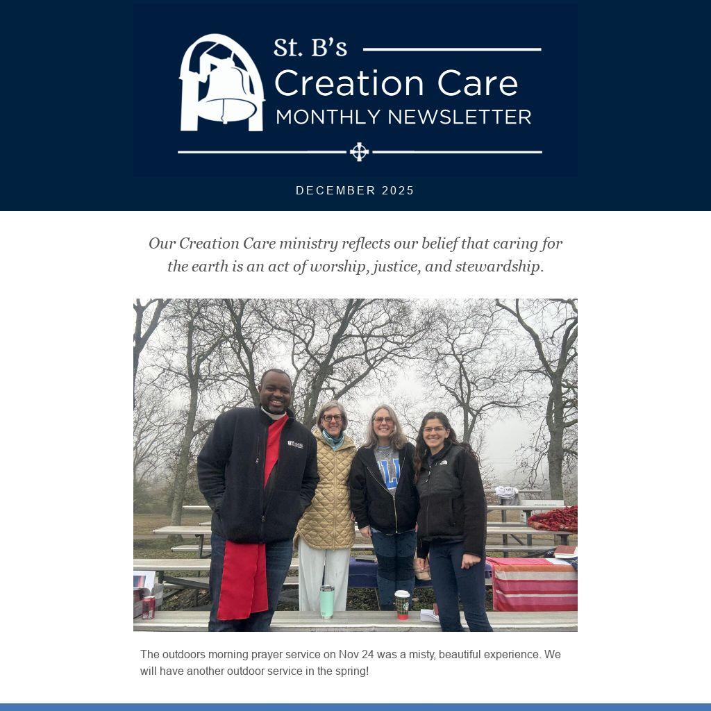 Our Creation Care ministry reflects our belief that caring for the earth is an act of worship, justice, and stewardship. |