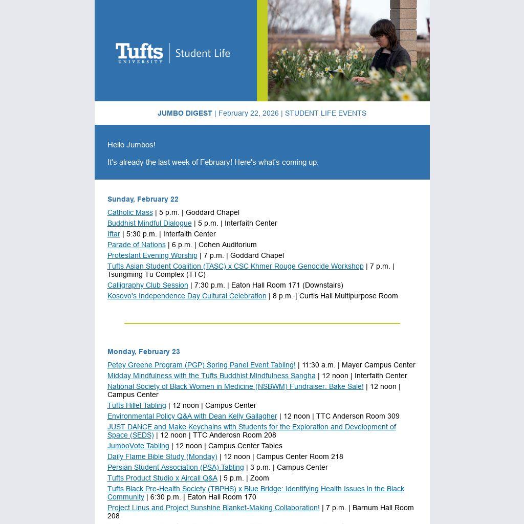 JUMBO DIGEST | February 22, 2026 | STUDENT LIFE EVENTS | |