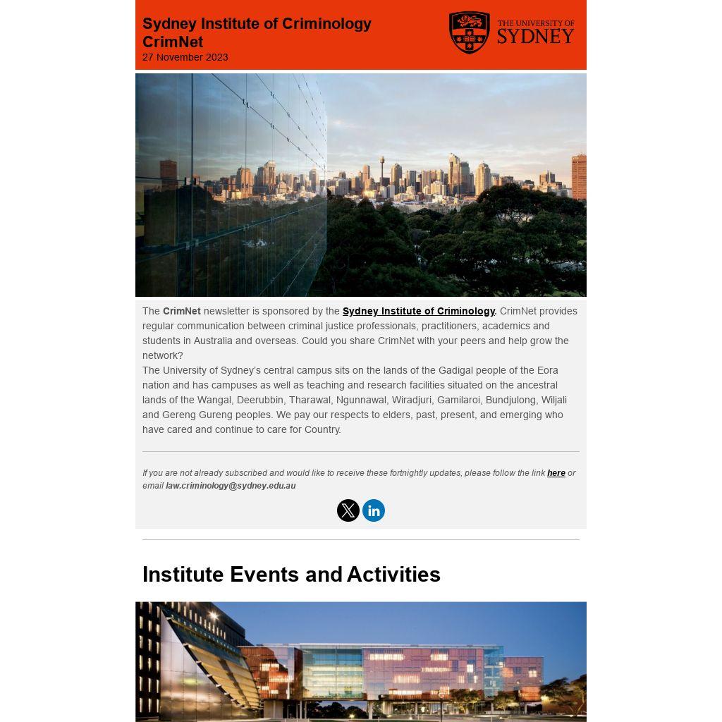 Please add law.criminology@sydney.edu.au to your address book or senders safe list to make sure you continue to see our emails in the future.