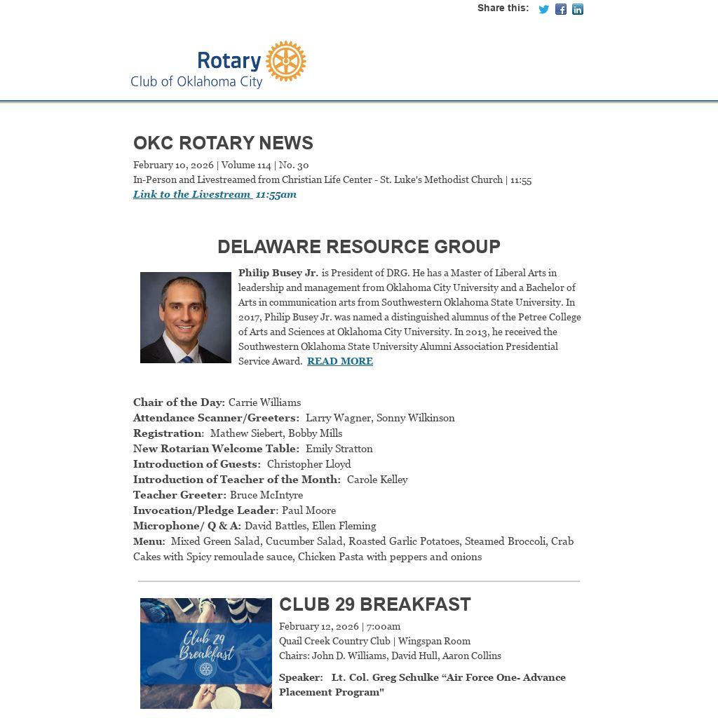 OKC Rotary NewsFebruary 10, 2026 | Volume 114 | No. 30