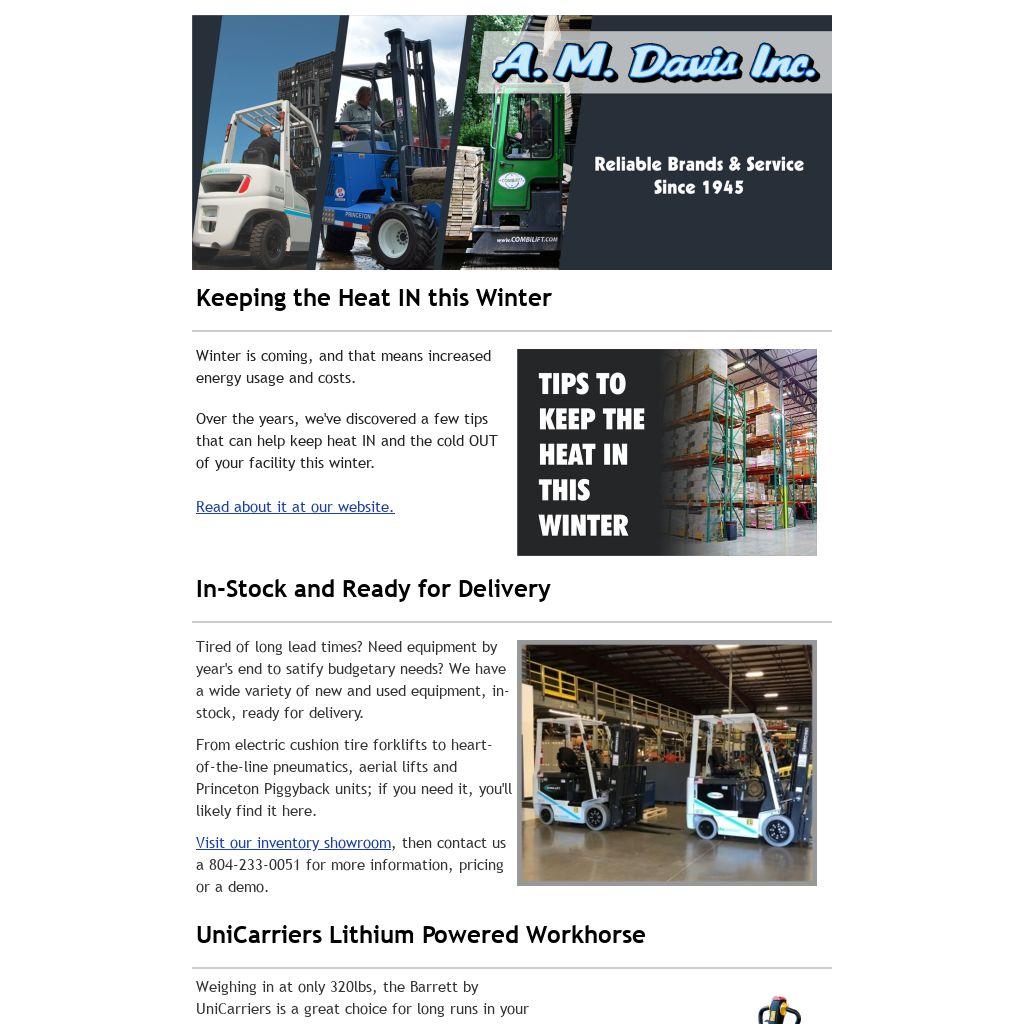 From electric cushion tire forklifts to heart-of-the-line pneumatics, aerial lifts and Princeton Piggyback units; if you need it, you'll likely find it here.